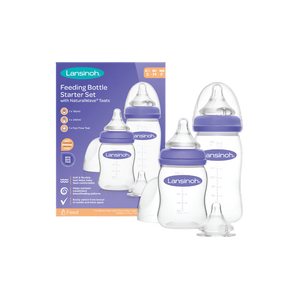 Lansinoh’s feeding baby bottle starter set includes: 1 x 160ml baby feeding bottle 1 x 240ml feeding bottle 3 sized NaturalWave® teats (slow, medium and fast) Our baby bottle starter kit...