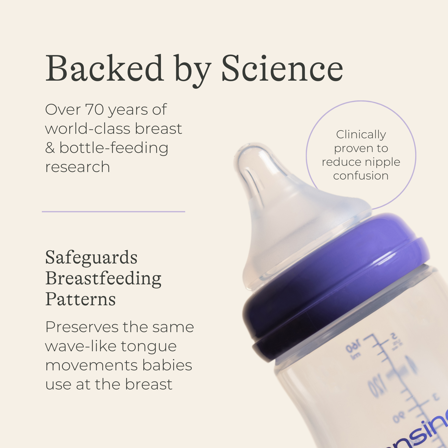 Lansinoh’s glass feeding bottle for baby is designed with comfort in mind to ensure parents can grip properly when feeding their newborn. The bottle comes with a medium flow NaturalWave teat that is clinically proven to reduce nipple confusion.